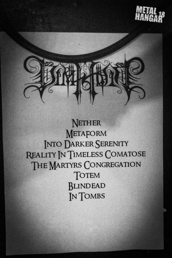 След почивката DIMHOLT излязоха на сцената, съпроводени с типичните за тях тежки рифове и разбиващи вокали. Пространството бе озвучено по подобаващ начин и съпроведено от перфектно изпълнени музикани словосъчетания от тонове, които бяха обусловени атмосферично и затвърдиха усещането за качествен метъл, който провокира към размисъл и настройка за едно по-различно изживяване. Парчетата се редяха едно след друго, въвеждайки все по-дълбоко и навътре в магията на този стил. Обстановката бе титанична и мракът струеше от всеки изпълнен акорд. Напълно отговаряща на времето навън тя отразяваше всеки един от спектрите на тъмната страна и величавостта на музиката. Трепетното усещане за хедлайнерите вече се наслояваше и тегнеше над залата като прокоба. Слой след слой усещането за кулминация на събитието се затвърждаваше. Музикантите от DIMHOLT показаха както винаги най-доброто от себе си. Слушайки ги човек има усещането за неизбежността на вселената и фактът, че всяко събитие има взаимовръзка с предходното. Мелодиката на групата бе уникално поднесена, изпълнена и водеща до музикален екстаз. Няма друго такова взаимодействие между група и публика, както това на нашите момчета и феновете тази вечер. След това разкъртващо представяне бе време за дългоочакваните хедлайнери- THY LIGHT.