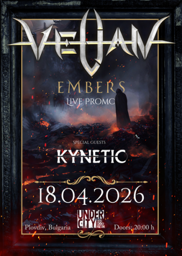 Родната Dark Metal група VELIAN издаде своя нов албум “Embers” на 13.03.2026. Сега групата обявява два концерта, на които ще представи новите композиции и на живо пред публика, като двете дати са съответно 18.04.2026, събота /Пловдив/ и 8.05.2026, петък /София/.