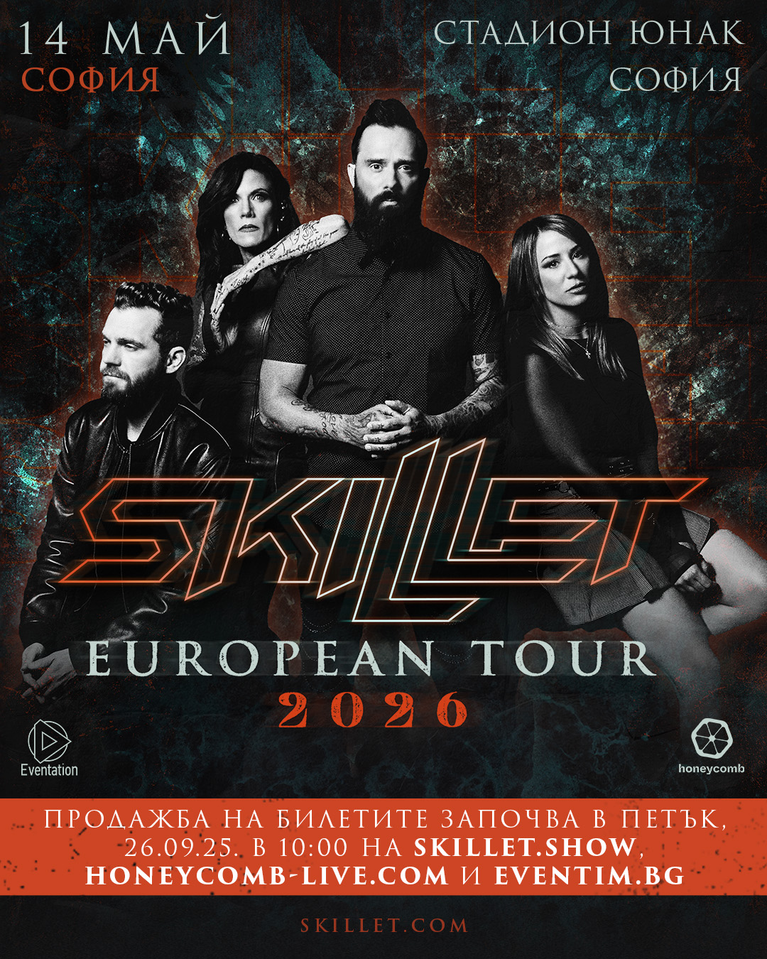 Продажбата на билети започна и тях можете да намерите на https://honeycomb-live.com/skillet-sofia-14-may-2026-bg