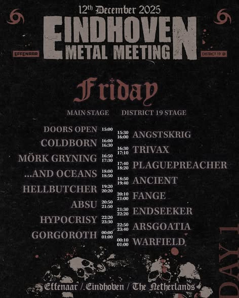 Eindhoven Metal Meeting 2025 е този уикенд. Метъл фенове от цял свят вече пътуват към Айндховен за ежегодната сбирка в Effenaar – традиция, която се утвърди с времето и привлича все повече фенове!