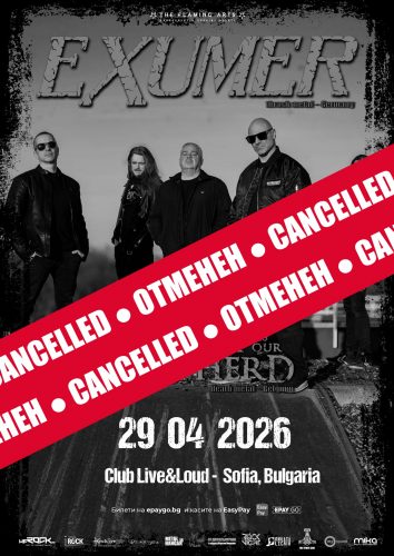 Поради продължаваща неяснота и липса на достатъчно информация от страна на агенцията на EXUMER относно нови дати за евентуалното им турне, решихме да отменим събитието – EXUMER live in Sofia на 29-ти април.
