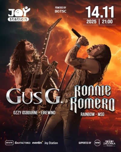 Kогато чилийският ураган срещне средиземноморския циклон, печелят единствено рок феновете. Gus G. (Firewind, ех- Ozzy Osbourne) и Ronnie Romero (ex-Ritchie Blackmore’s Rainbow, ex-Michael Schenker Group, Lords of Black) отдавна са любимци на българската публика и въпреки честите си посещения, тяхната енергия и виртуозност са налице всеки път. Фен базата им главоломно нараства със всяко следващо участие. Музикантите са преминали през толкова много звездни състави и формации, а обединението на тези две стихии в Convergence Tour 2025 е било само въпрос на време. В петъчната вечер на 14-ти ноември, Joy Station беше готов да приюти феновете на класическия хард рок и пауър метъл. Организаторите от клуба, в съдействие с BGTSC се погрижиха всичко да протече безпроблемно. Вратите отвориха точно в 20:00. На разположение пред сцената маси очакваха посетителите, а публиката се впусна в търсене на най-хубавите места. С питие в ръка и улисани в приказки времето мина неусетно.