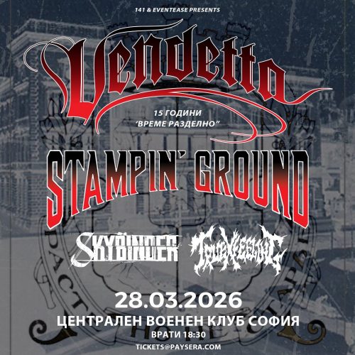 И така, вече имаме британските крале на метъл хардкора Stampin’ Ground и Vendetta – бандата, която полага основите на софийската хардкор сцена. Те отново ще свирят заедно в Централен Военен клуб, точно както през 2003 г. Сега към плаката добавяме Skybinder и TRUExFEELING и с това лайн-ъпът е завършен.