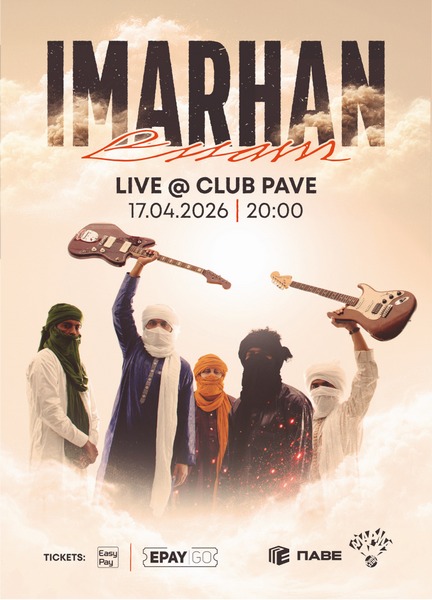 Посланиците на „пустинния блус“ Imarhan, една от най-разпознаваемите туарегски групи в света, идват в София за специален концерт на 17 април (петък вечер) в столичния клуб „Паве“ (под Столична библиотека, вход откъм ул. „Уилям Гладстон“ 68). Групата е на голямо европейско турне с музиката от най-новия си албум Essam, издаден в началото на тази година, а концертът в София е единствената им дата за цяла Източна Европа.