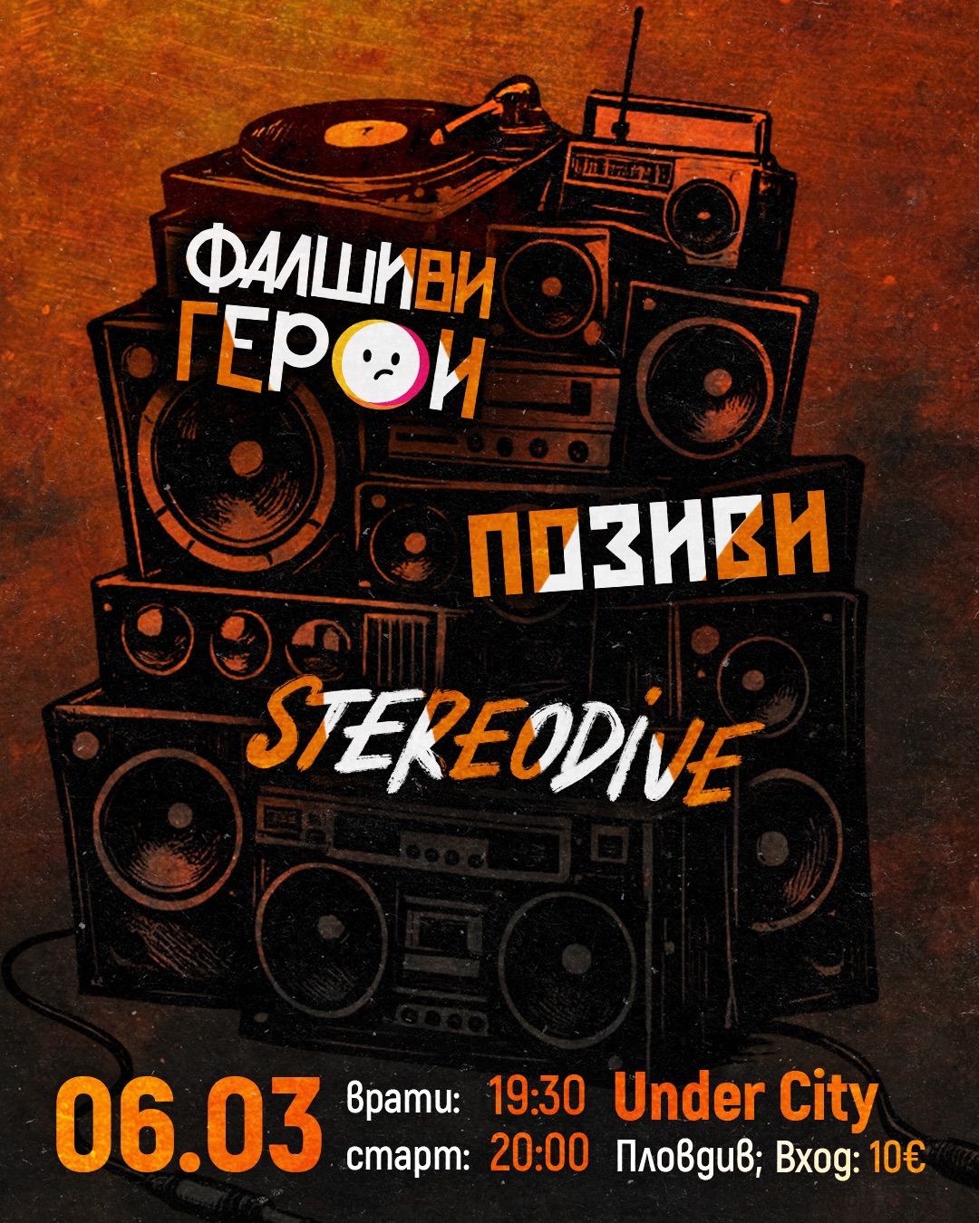 Три от най-интересните нови имена в родната ъндърграунд сцена – Фалшиви герои, Stereodive и Позиви – обединяват сили за серия от съвместни концерти в няколко български града.