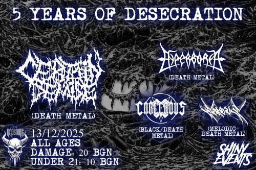 CERTAIN DEMISE празнуват „5 YEARS OF DESECRATION“ и ви канят на купон на 13 декември, в клуб „При Черепите“: