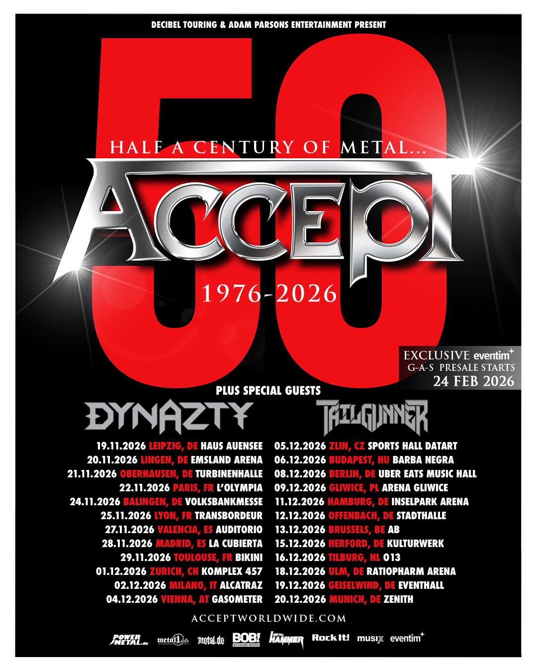 Легендите ACCEPT ще отбележат своята 50-годишнина през 2026 година. Бандата ще празнува със специално световно турне, което ще обиколи Европа (дано не ни забравят).
