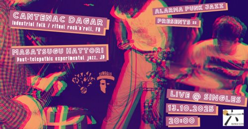 Преди Cantanac Dagar в Зала „Сингълс“ на НДК ще слушаме японския барабанист, перкусионист, експериментатор и композитор Масацугу Хатори (Masatsugu Hattori). За „Аларма Пънк Джаз“ 2025 беше силна японскa година (с концерите на Akira Sakata 80th Anniversary Quintet, heavenphetamine, Казухиса Учихаши, Шинго Масуда и Acid Mothers Temple & The Melting Paraiso U.F.O.), а Масацугу Хатори съвсем не е непознато име за българския слушател.