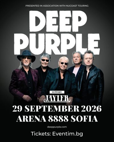 Легендарната британска рок група DEEP PURPLE има нов албум и българската публика ще бъде първата, която ще го чуе. Обичаните музиканти се завръщат у нас на 29 септември 2026 и ще превърнат Арена 8888 в сцена на незабравим рок спектакъл. Емблематичните титани, оформящи звученето на жанра повече от 5 десетилетия, ще бъдат придружени от музикантите от Jayler. Билетите за концерта тръгват в продажба на 21 ноември, петък, в 12:00 в мрежата на Eventim.