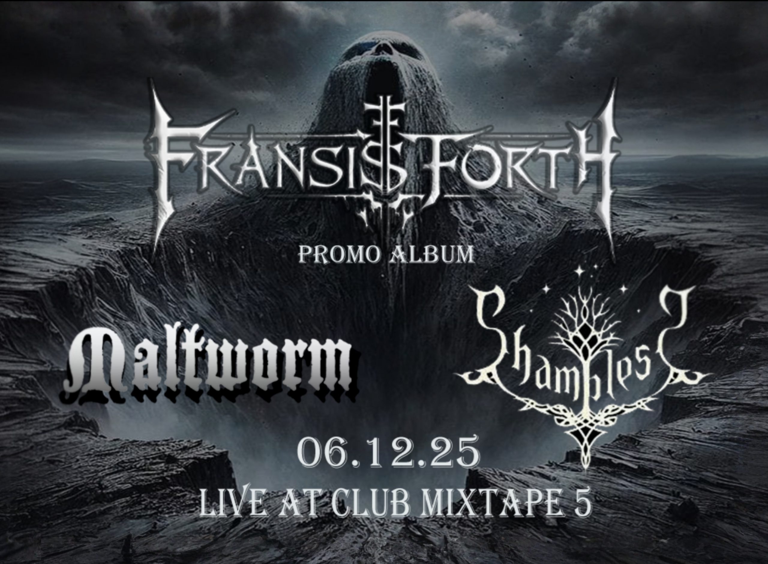 На 6.12.2025 година в столичния клуб Mixtape 5 ще се проведе концерт по повод промо на дебютния албум на FRANSIS FORTH съответно те ще бъдат подкрепени от своите колеги от MALTWORM и SHAMBLESS. Ето и няколко думи за самите участници в събитието.