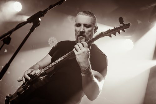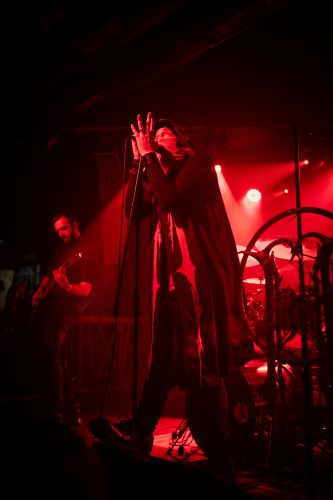 DIMHOLT огряха в червена светлина залата и се появиха под съпровода на китарни акорди. Атмосферични звуци обляха всички присъстващи. Мрачна красота изпълваше всяко кътче от времето и пространството. Няма такова друго нещо като музика, която прониква в душата и оставя трайни впечатления във всеки докаснал се до нея. Докато звук и светлина се преплитаха в едно всички съпреживявахме историите, които бандата ни разказваше и се пренасяхме в една друга реалност. С всяко следващо изпълнение обстановката се нажежаваше и всичко вървеше към логичната кулминация на вечерта.