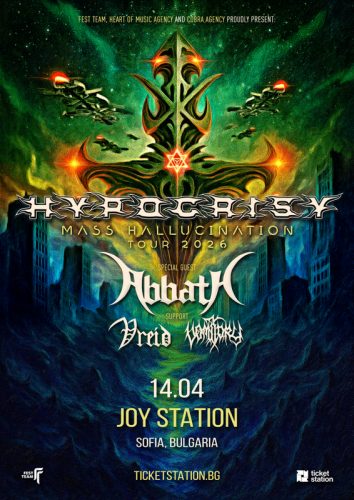 Една от най-обичаните скандинавски метъл банди у нас, HYPOCRISY, се завръща в България през 2026 г. Концертът ще се състои на 14 април в клуб Joy Station, София, като част от новото мащабно турне Mass Hallucination, което ще премине през 26 европейски града и ще събере някои от най-силните имена на екстремната сцена.