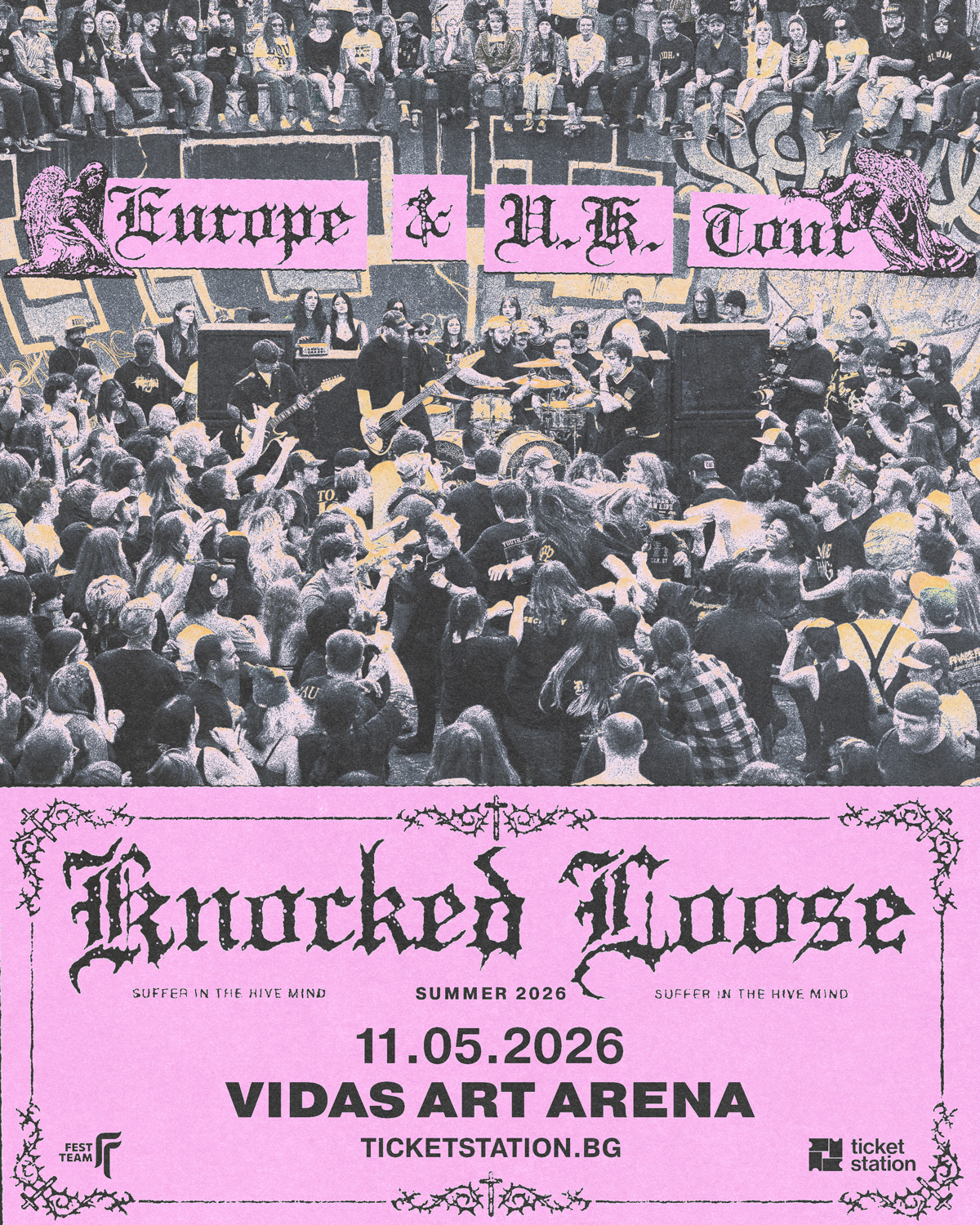 Американската хардкор сензация Knocked Loose идва в София на 11 май за концерт на Vidas Art Arena по покана на Fest Team. След години на непрекъснати турнета, експлозивни концерти и участия на едни от най-големите сцени в света – включително и като съпорт на Metallica – групата от Луисвил най-накрая пристига и в България. На малката сцена на Vidas Art Arena те ще представят новия си албум You Won’t Go Before You’re Supposed To – един от най-обсъжданите хардкор записи на последната година.
