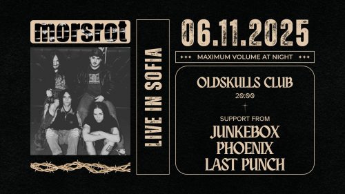 На 6 Ноември, При Черепите (OldSkull Club), на живо в София щеможете да видите на една сцена MORSROT (Берлин/Малта) , Junkebox, Phoenix и Last Punch. Колаборация между класически хард рок, метъл, стоунър и хардкор стилове с цел да задоволи всеки претенциозен вкус.