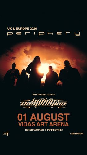 На 1 август малката сцена на Vidas Art Arena събира две от най-нестандартните имена в съвременния метъл в рамките на една вечер: Periphery и Within Destruction. Прогресивен метъл, изграден върху прецизност и емоционална дълбочина срещу deathcore, абсурден, тежък и провокативен едновременно. Билетите влизат в продажба на 17 април в мрежата на Ticket Station и са на цени, които започват от 33 евро.