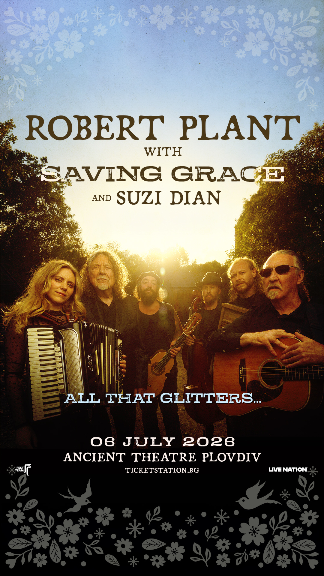 Това лято в България пристига Робърт Плант със Saving Grace и “All That Glitters…” – най-интимната и вдъхновена форма на музиката, която легендарният музикант е създавал в последните десетилетия. На 6 юли 2026 г. българската публика ще стане част от това вълшебство на Античния театър в най-стария жив град в Европа – Пловдив. Проектът Saving Grace е великолепен не заради миналото, което Плант естествено носи със себе си, а заради музиката, която прави сега. Билетите, на цени, които стартират от 100 евро, влизат в продажба на 5 февруари, четвъртък, в 10:00 в мрежата на Ticket Station.