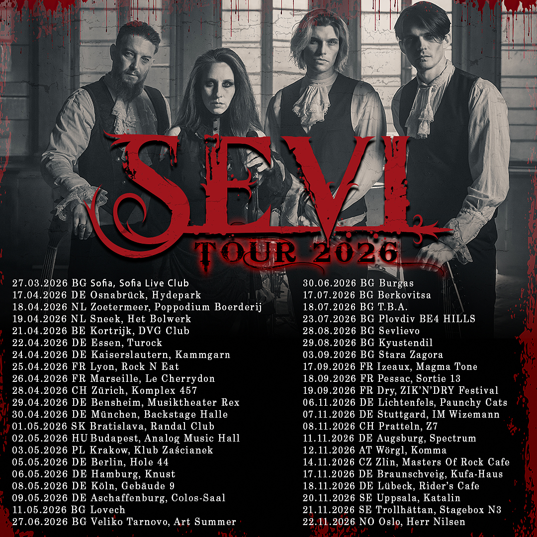 Родната банда SEVI обяви дълъг списък с дати за 2026-та година. Те ще турират в Европа заедно с Hardline, които представят нов албум, но се готвят и за фестивални участия у нас, сред които голямата сцена на Hills of Rock, на 23-ти юли, когато ще се свирят заедно с Epica, Sabaton и Savatage на Be4 Hills.