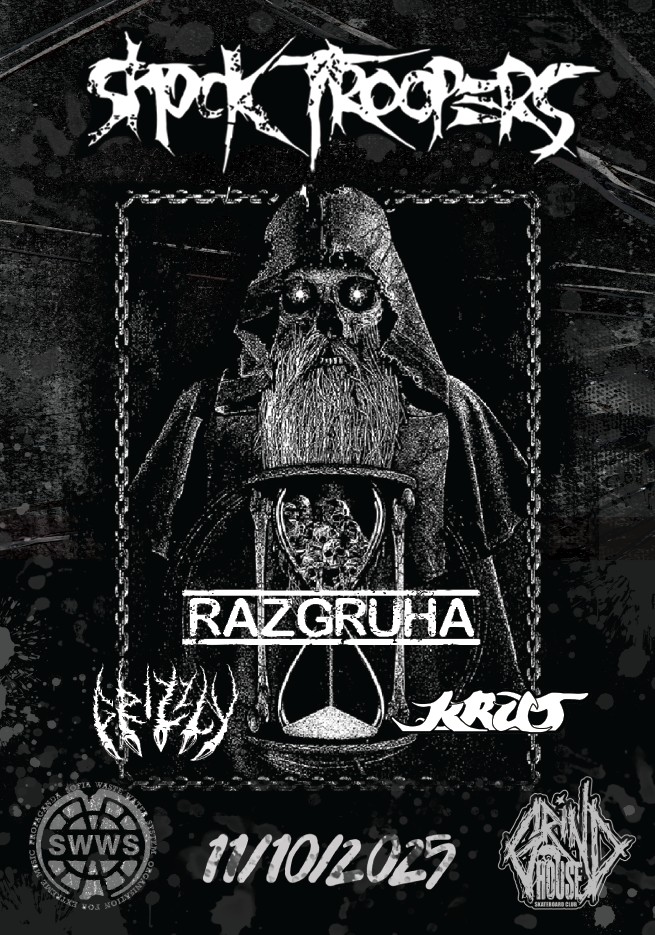 Sofia Waste Water System и Grindhouse Skateboard Club представят концерта на македонската метал/кръст/грайнд банда SHOCK TROOPERS от Скопие тази събота, 11.10 в София. Групата е с почти 20-годишна история, както и с множество участия и издания зад гърба си. Стилът им е умело съчетание между скоростни наситени рифове, грайнд експлозии и бавни тежки атмосферични откъси. Сега е време и за първото им шоу в България!